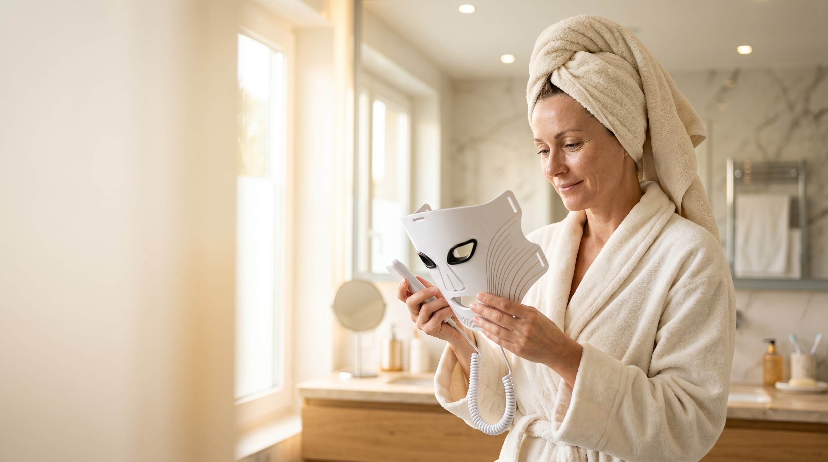 "Je l'utilise principalement en lumière rouge contre les rides et je suis agréablement surprise. En 3-4 semaines d'utilisation régulière — environ 10 minutes plusieurs fois par semaine — j'ai remarqué que ma peau cicatrise mieux et parait plus ferme. C'est indolore, ça n'irrite pas et on peut le faire tranquillement chez soi. Ce n'est pas magique du jour au lendemain mais avec de la régularité les résultats sont là. Je recommande pour celles qui veulent une solution douce et sans produits chimiques.